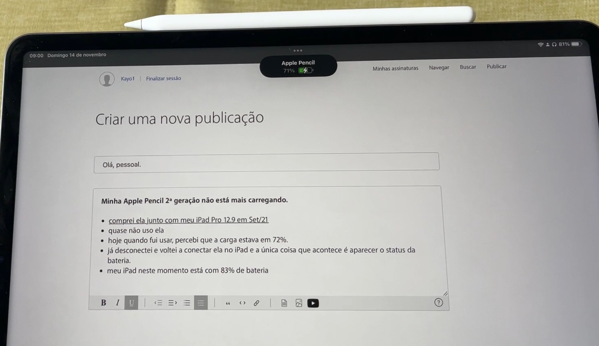 Se você tiver o Apple Pencil (1ª geração)