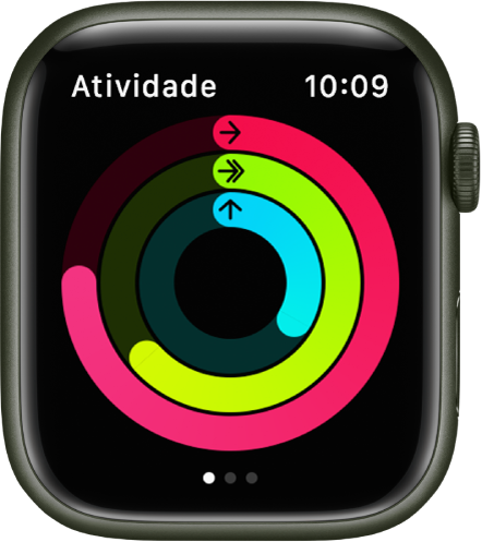 no Apple Watch a qualquer momento para conferir o seu progresso. O app Atividade mostra três círculos.