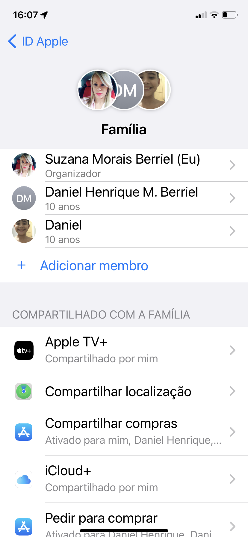 1. Acesse Ajustes, toque no seu nome e toque em Compartilhamento Familiar.