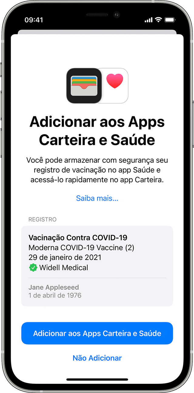 Adicionar um cartão de vacinação ao app Carteira da Apple