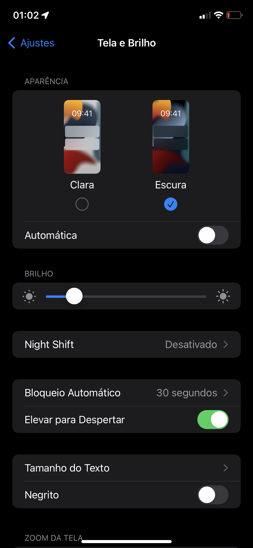 Não sei qual seu aparelho, mas veja se ele é compatível, Ajustar o brilho e a temperatura da cor no iPhone, iPad ou iPod touch. Se for, tente Reiniciar o iPhone. Se não resolver, pode tentar atualizar: Atualizar o iPhone, iPad ou iPod touch, atenção a recomendação de fazer backup antes. E continuando, veja se redefinir ajuda: Retorne os ajustes do iPhone aos padrões.