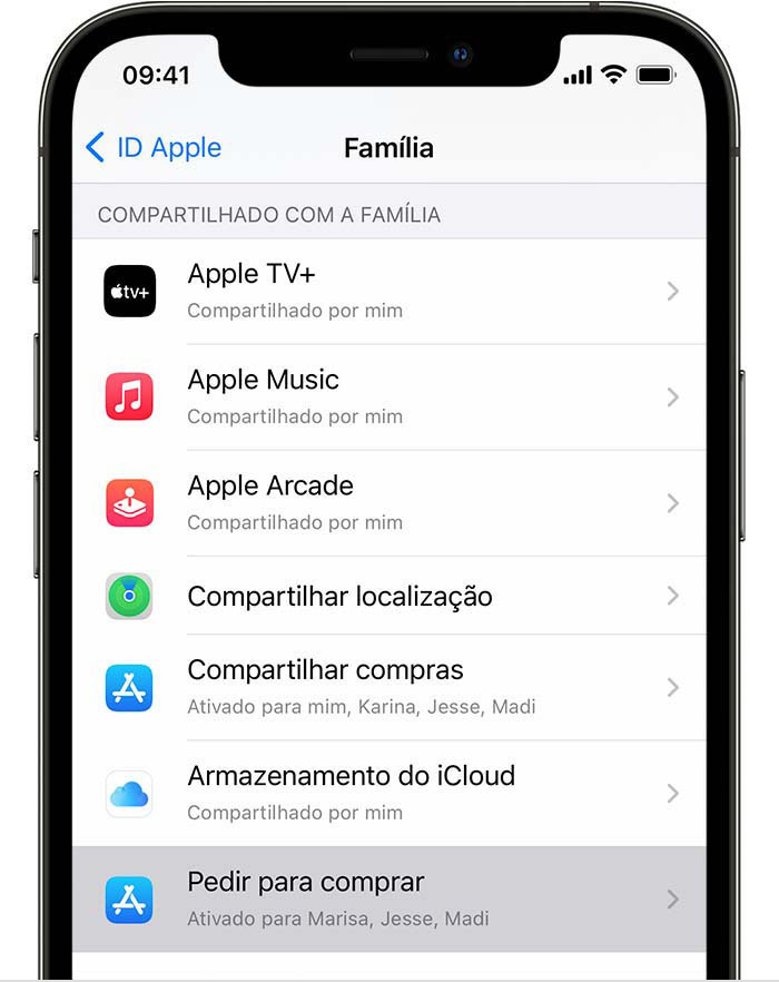 Caso seja o organizador da família, será necessário usar seu dispositivo para ativar ou desativar o Pedir para comprar.