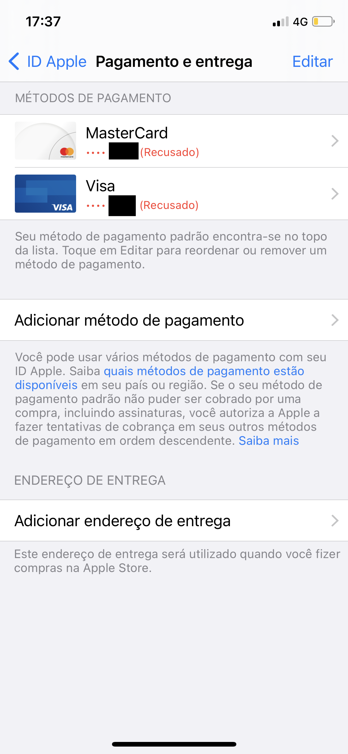 Se a forma de pagamento for recusada na App Store ou iTunes Store - Suporte da Apple (BR)