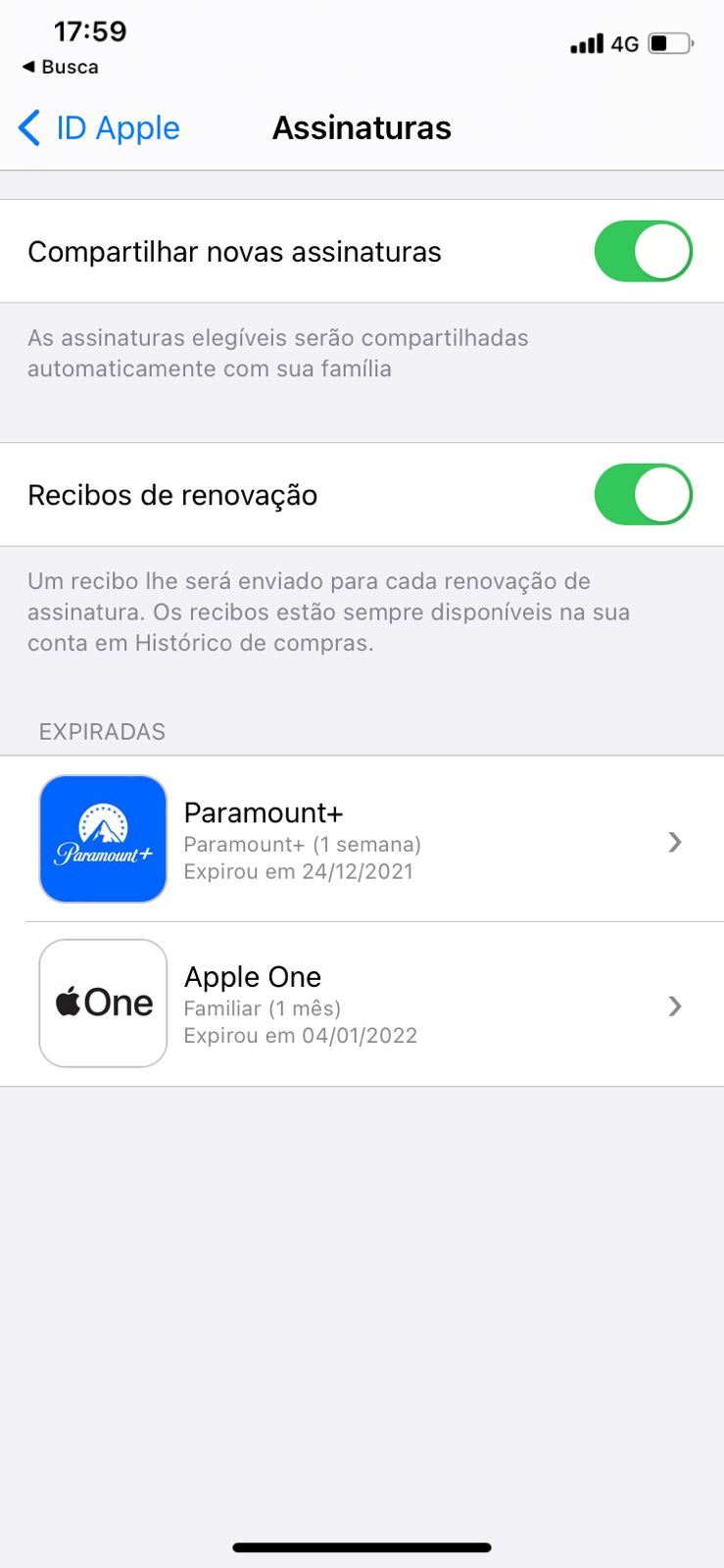 Assinatura Apple One não está ativa, então já foi cancelada?