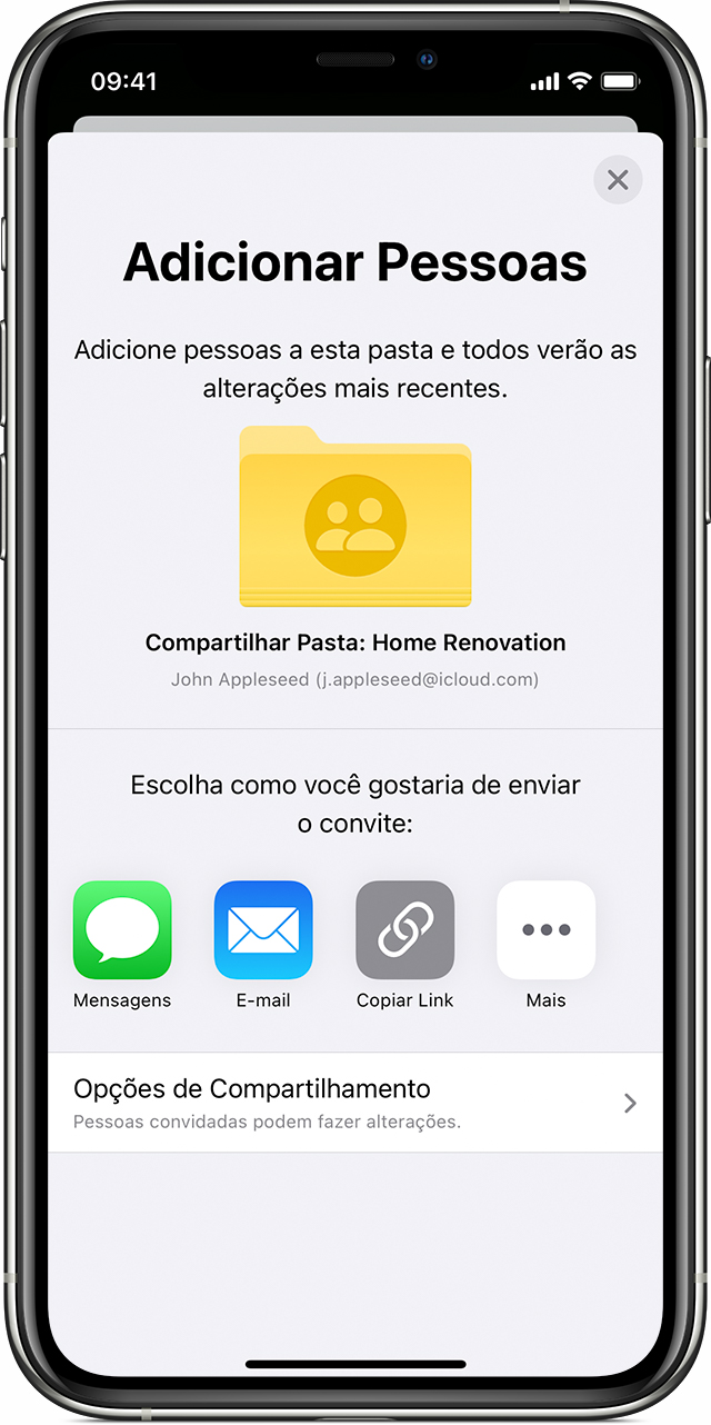 Você precisa do iOS 13 ou posterior ou iPadOS para compartilhar uma pasta ou aceitar um convite para colaborar em uma pasta compartilhada. Não é possível compartilhar uma pasta com uma nota bloqueada ou uma nota compartilhada por outra pessoa.