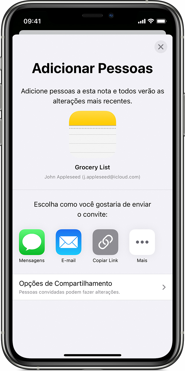 , toque em Adicionar Pessoas e siga as etapas 3 e 4. Se você já estiver compartilhando uma nota, o botão Adicionar Pessoas