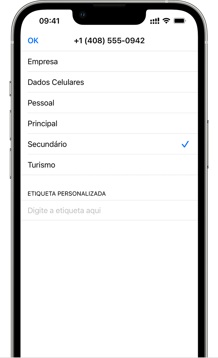 Se desejar alterar as etiquetas, toque em Ajustes, toque em Celular ou Dados Móveis e toque no número cuja etiqueta deseja alterar. Depois, toque em "Etiqueta do Plano Celular" e selecione uma nova etiqueta ou insira uma personalizada.