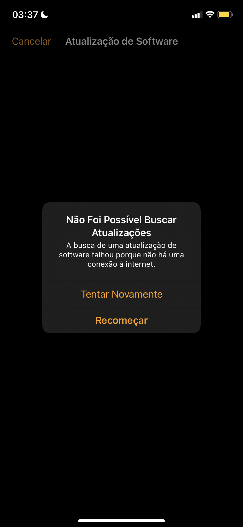 Reinicie o Apple Watch, verifique se ele está conectado à Internet e tente atualizá-lo novamente.