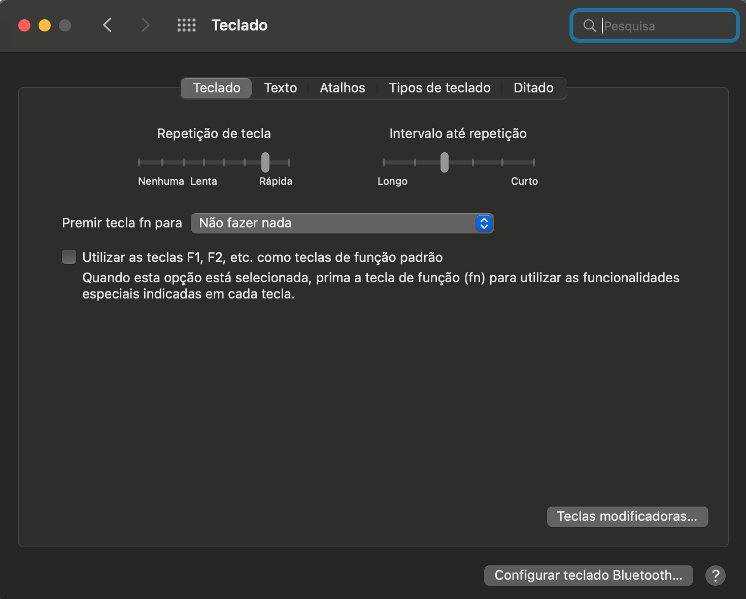 não me aparece opção de ligar/desligar a iluminação, no menu "teclado", nas preferências do sistema