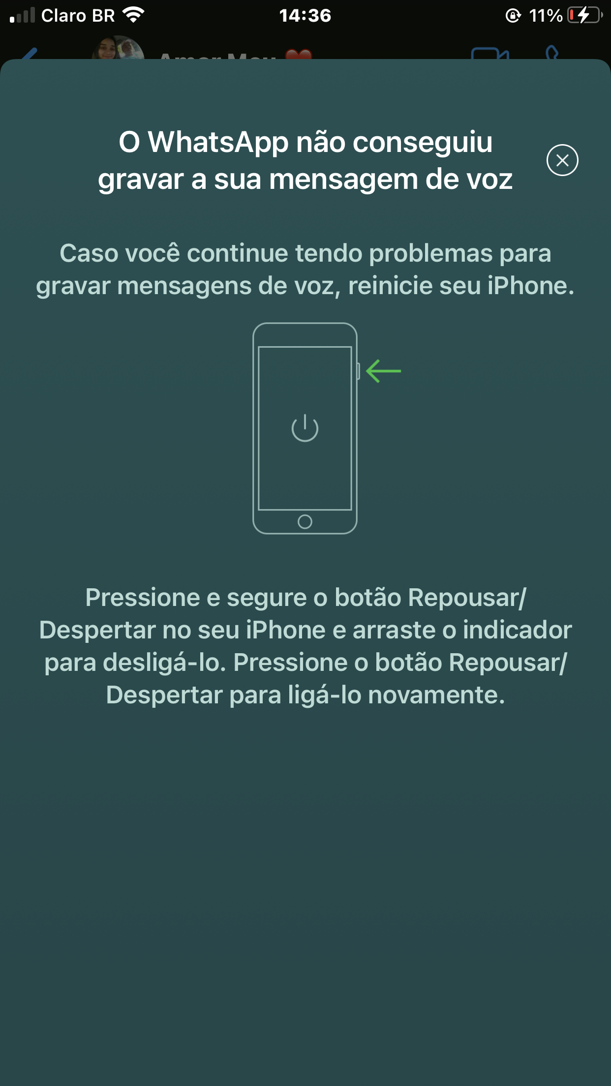 Não consigo gravar áudios nas plataformas digitais meu WhatsApp e Facebook não estão funcionando áudio e foi do nada e fica aparecendo essa msg