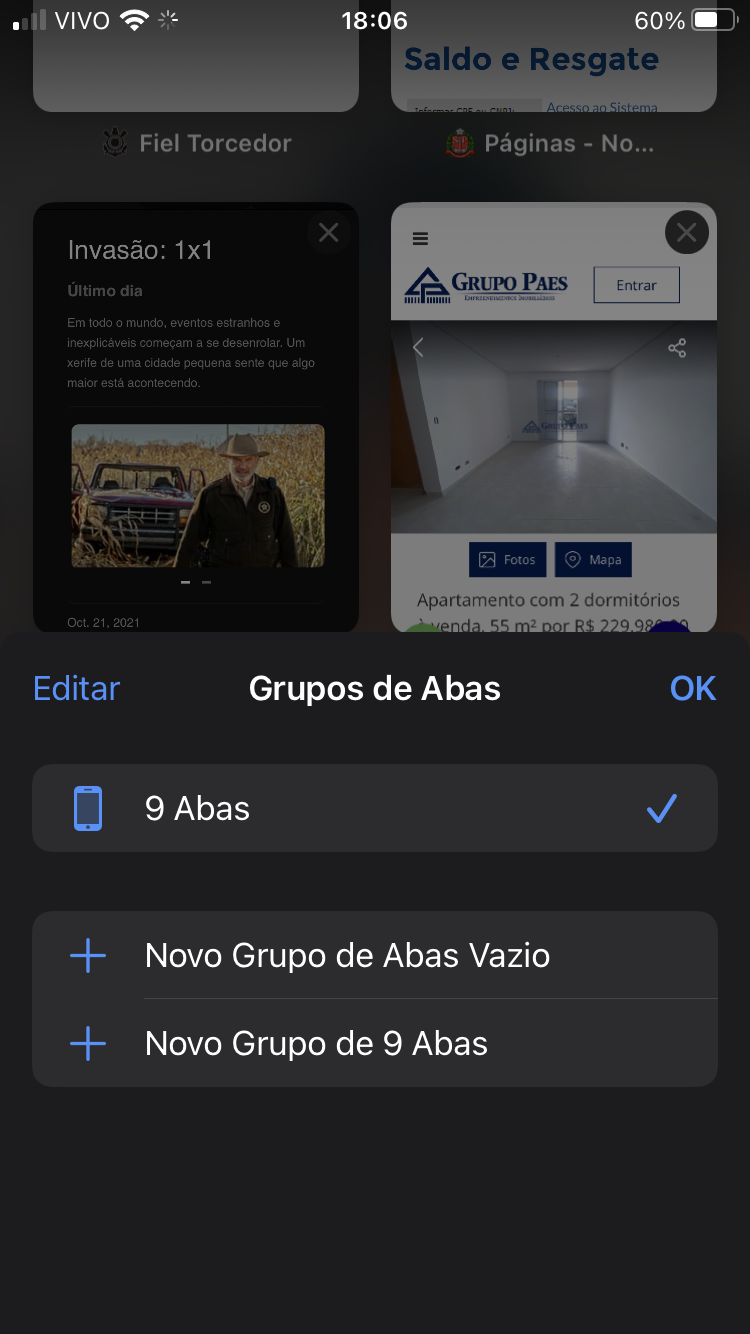 Quando abro o Safari, a parte onde fica o Privado não aparece
