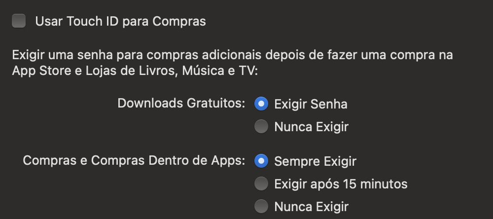 Tenho um MacBook Air 2020 e de uns meses para cá sempre que vou baixar algo na Apple Store ele solicita a senha do meu ID Apple em vez do touch ID, algo que vem me incomodando bastante. Já olhei por tudo e não consegui resolver.