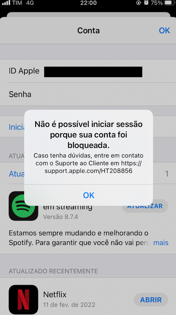 ID Apple - Minha conta foi bloqueada