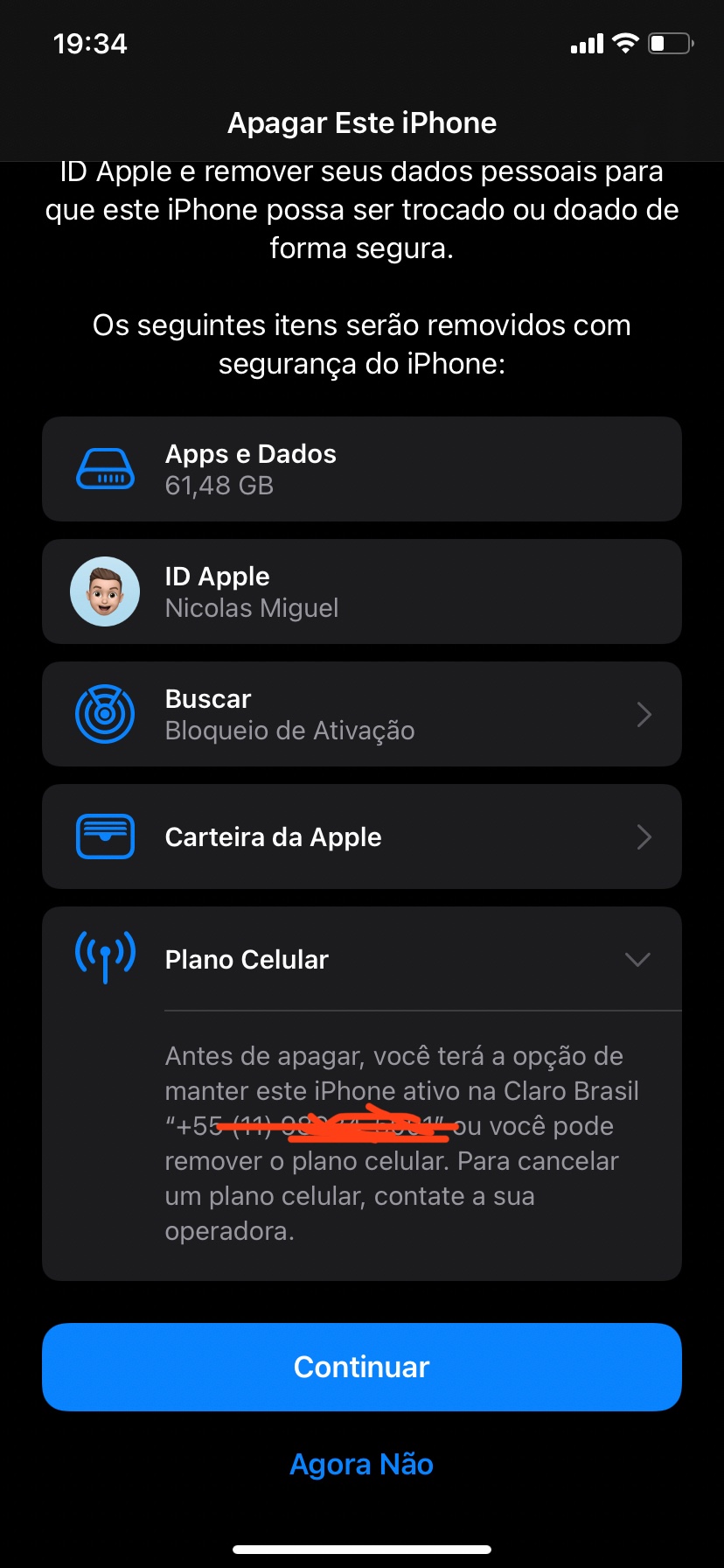 Tenho um iPhone 11, e quero restaurá-lo para os padrões de fábrica. Porém, meu chip principal que eu uso, é um E-SIM da operadora Claro. Não utilizo chip físico no meu iPhone.