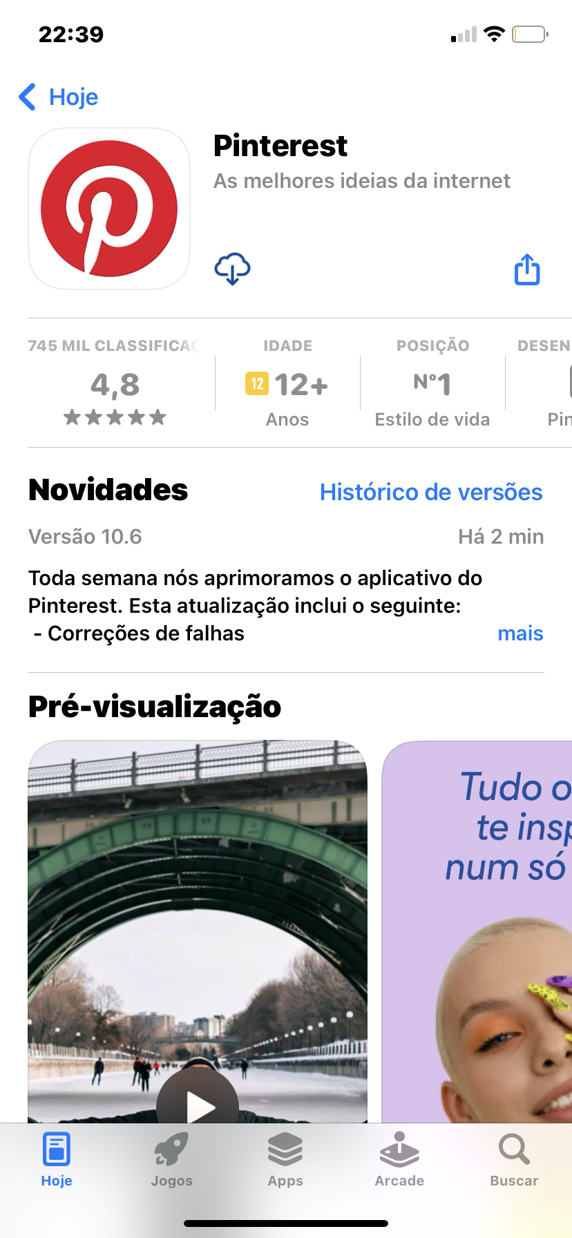 Não consigo instalar o aplicativo Pinterest, clico no ícone para instalar mas não vai.