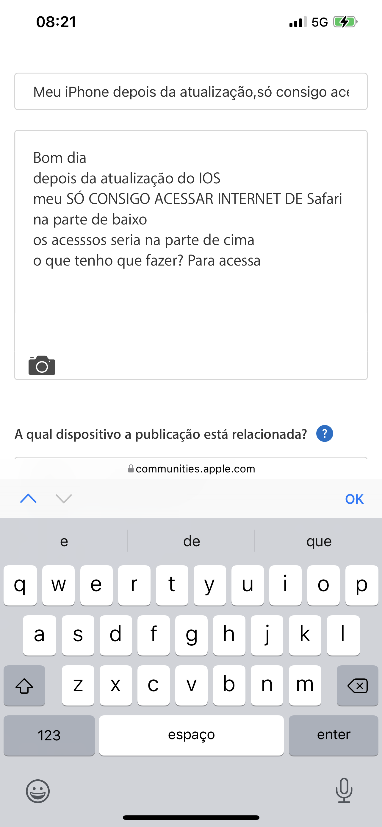 e toque em “Barra de Endereço Superior” ou “Barra de Endereço Inferior”. - Acesse Ajustes
