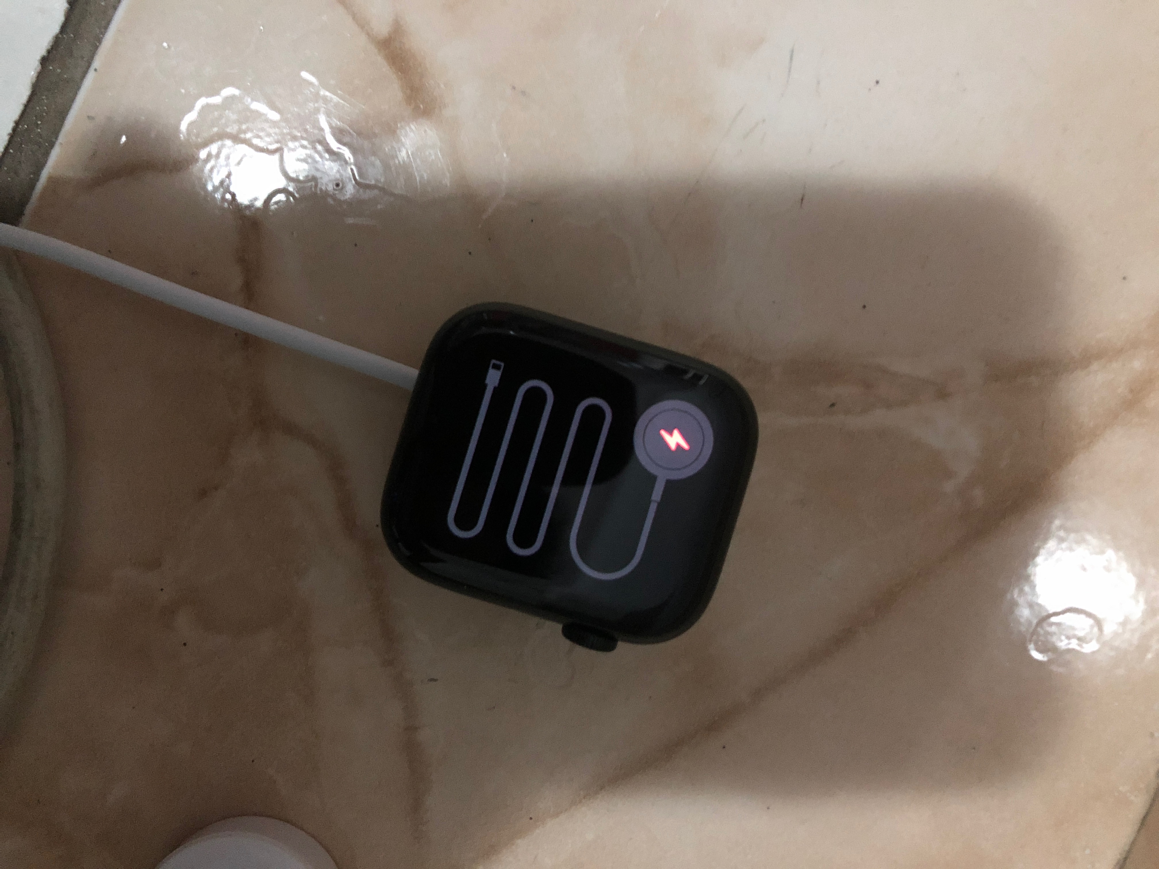 Quando o Apple Watch precisa ser carregado, um raio vermelho