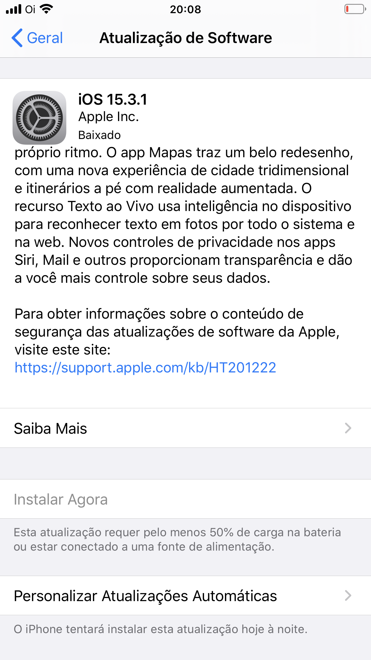 Ta informando que precisa de 50% de bateria ou ligar no carregador para atualizar