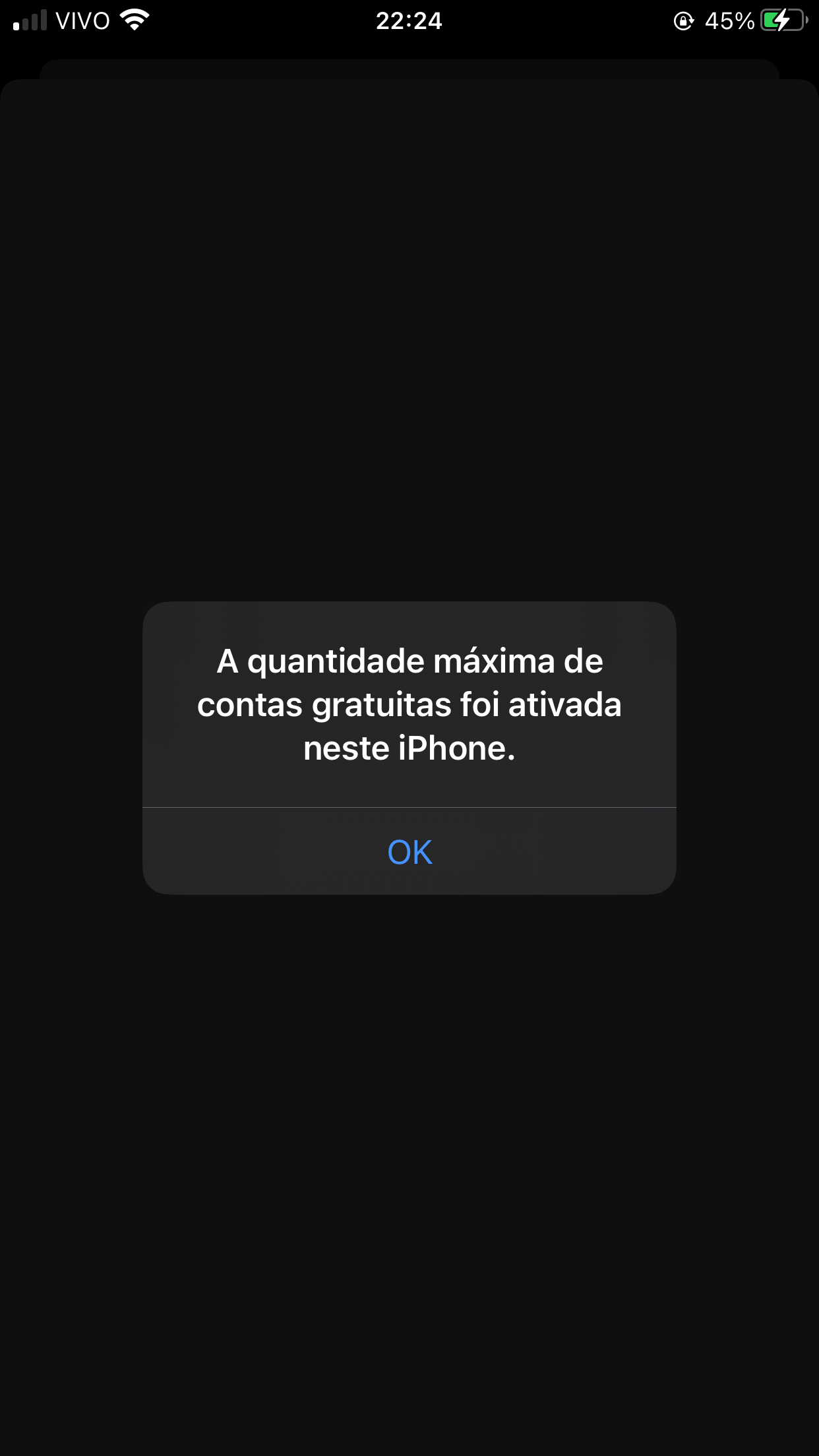 Este iPhone excedeu o limite de contas gratuitas