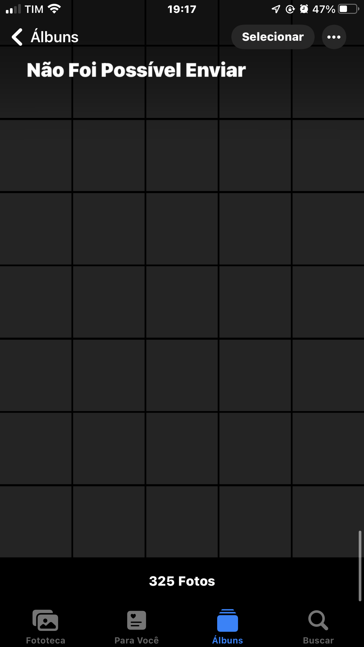 Tirei umas fotos e o iPhone criou uma pasta chamada “não foi possível enviar” com as fotos todas em cinza não consigo visualizar nenhuma