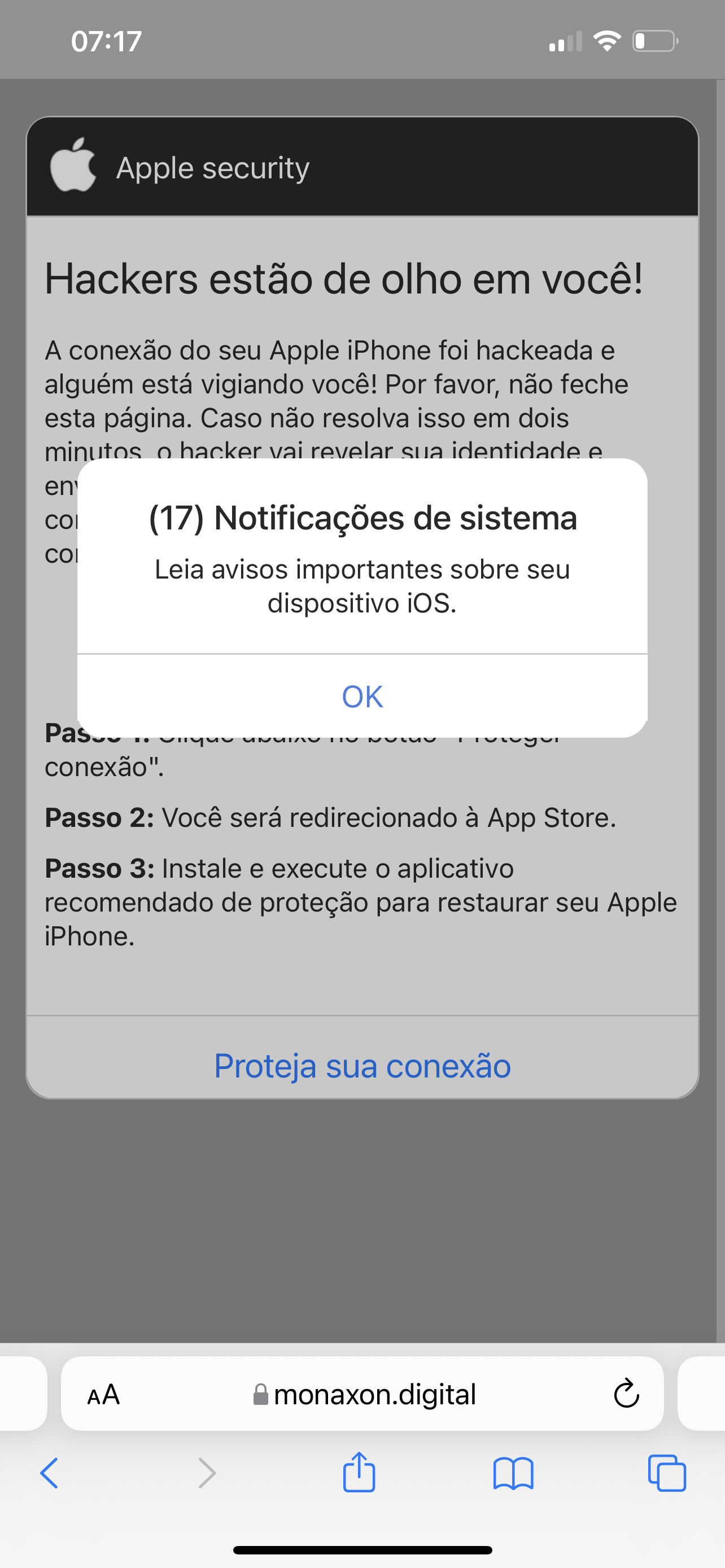 Mensagem de iPhone hackeado
