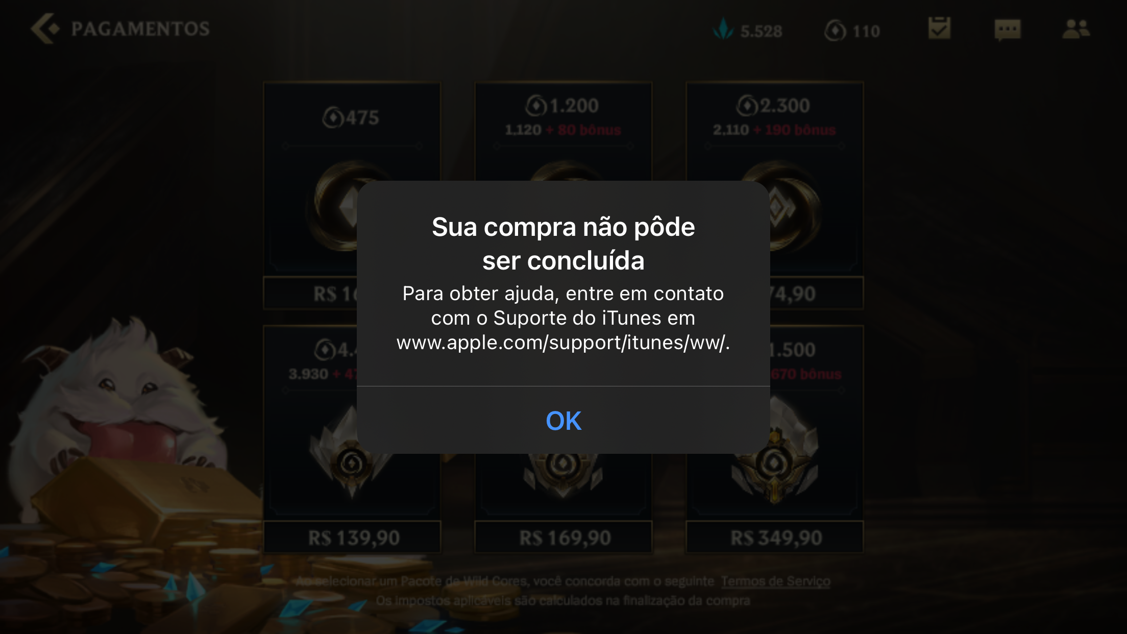 Tento fazer compra no jogo on-line e não consigo porque ?