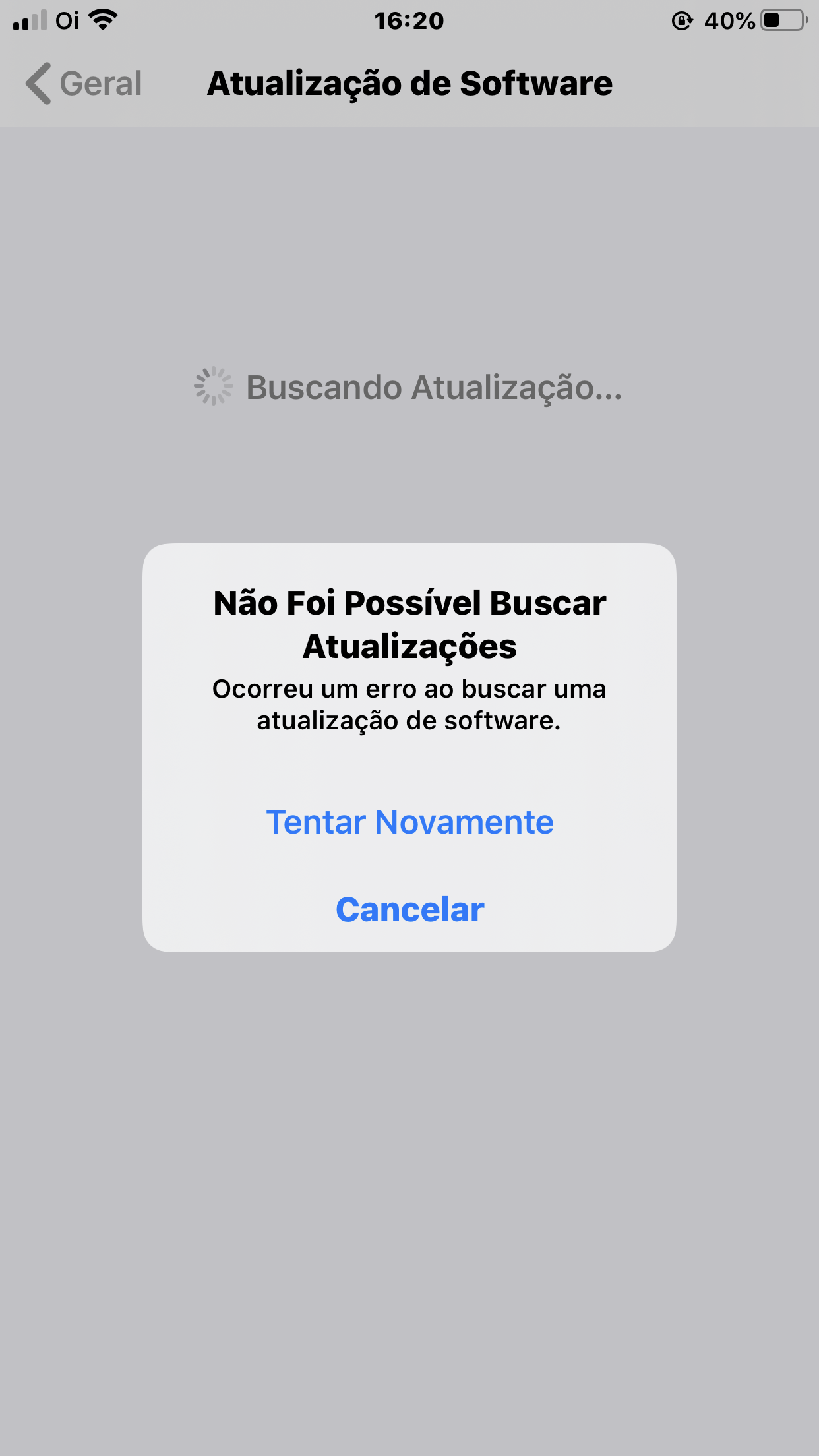 Ocorreu erro ao buscar a atualização de software do iPhone