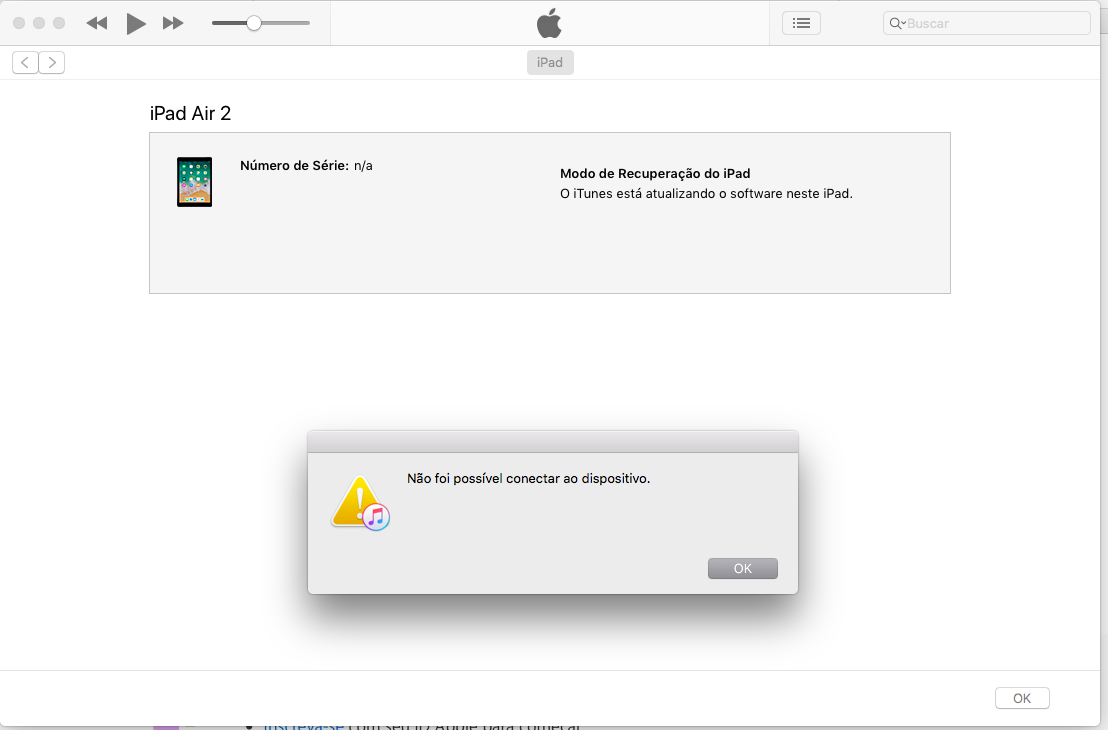 Quando tento atualizar e restaurar aparece erro não identificado e o Numero da Serie do IPAD no Itunes aparece como N/A.