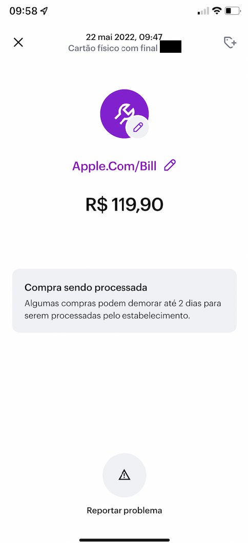 Foi feito uma cobrança por um App no qual, não autorizei que pudesse usar meu cartão de crédito. Uma cobrança no valor de 119,90