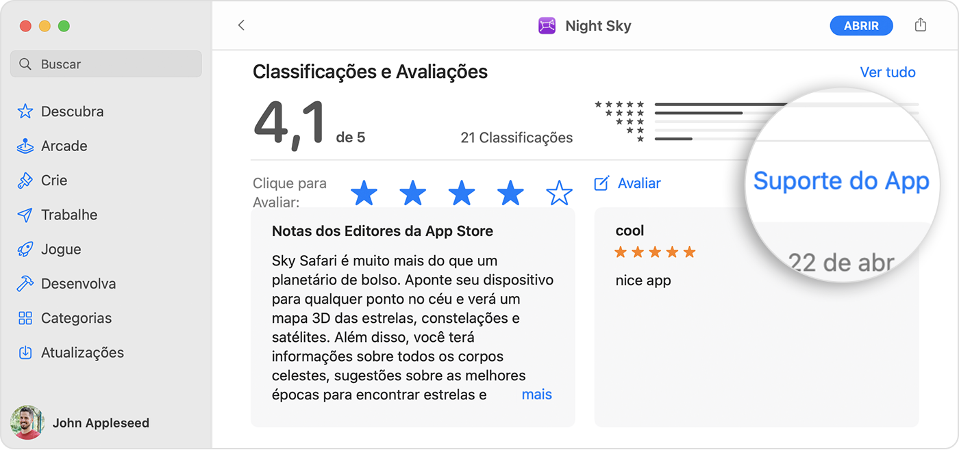 Entrar em contato com o desenvolvedor de um app para macOS