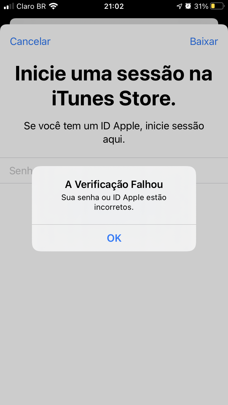 A senha do meu id apple não esta indo ao meu APP STORE, nao sei o que está acontecendo, sendo que esta tudo certo!