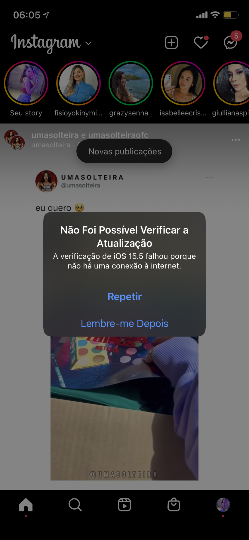 "Não foi possível buscar atualizações. Ocorreu um erro ao buscar uma atualização de software".