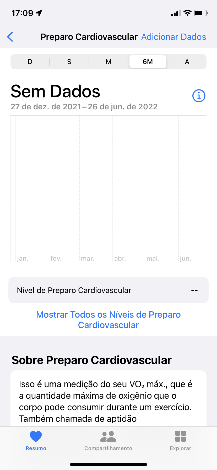 Tenho Apple Watch series 7 e meu preparo cardiovascular há um mês não tem nenhum dado. Fiz todas as configurações orientadas e continua sem dados. Como resolver?