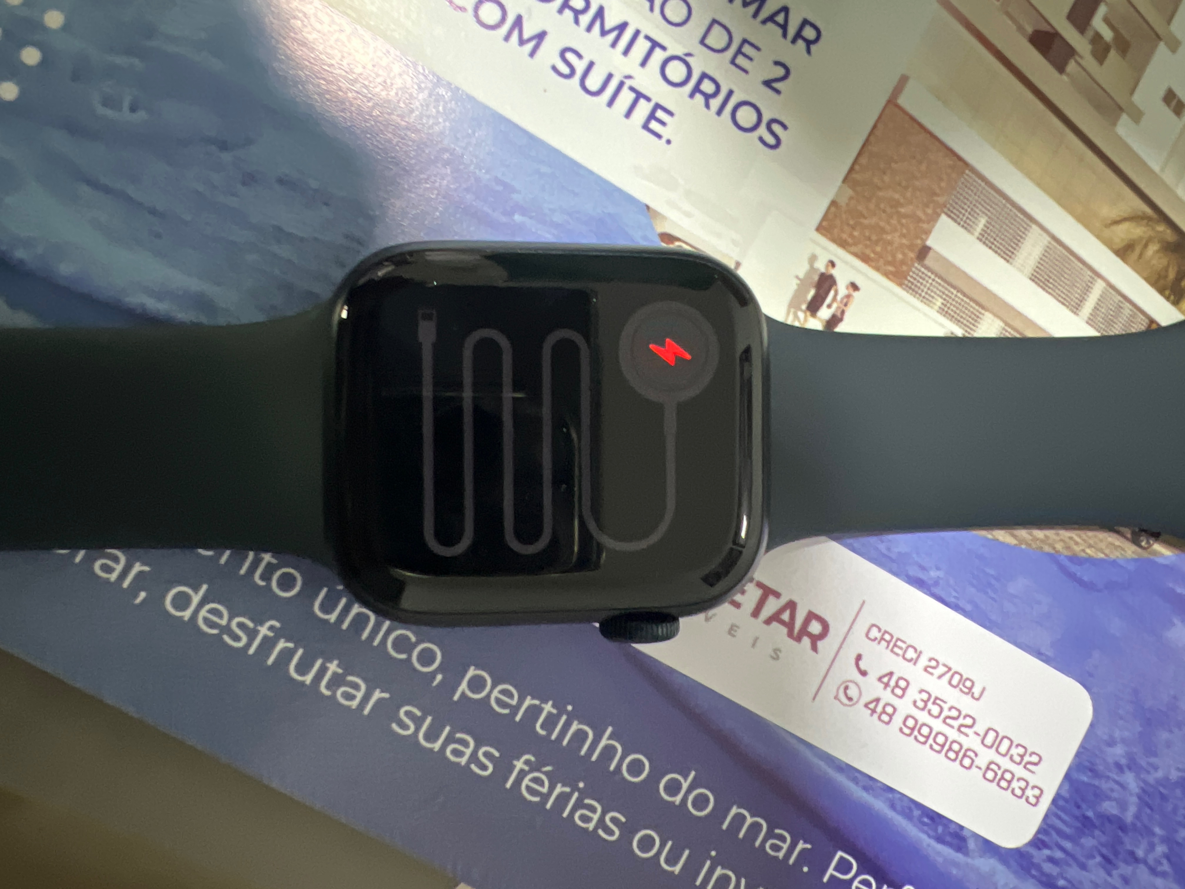 Quando o Apple Watch precisa ser carregado, um raio vermelho
