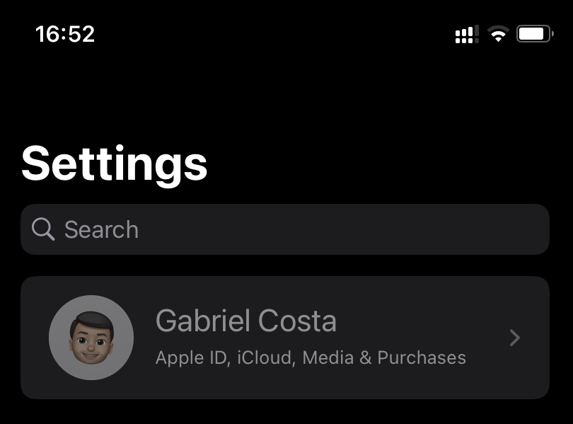 O meu nome aparece em tom cinza claro e não consigo clicar nele. Mesmo que eu faça uma busca na barra de pesquisas, as opções do iCloud não aparecem para mim.