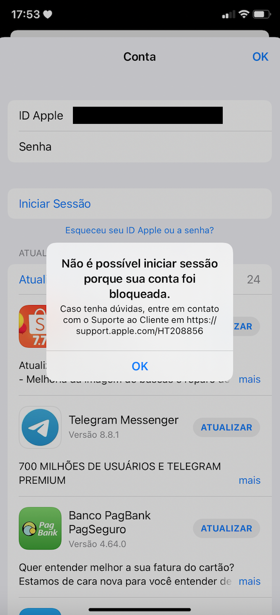Bom dia , minha conta no App Store foi bloqueada. Não sei o motivo.