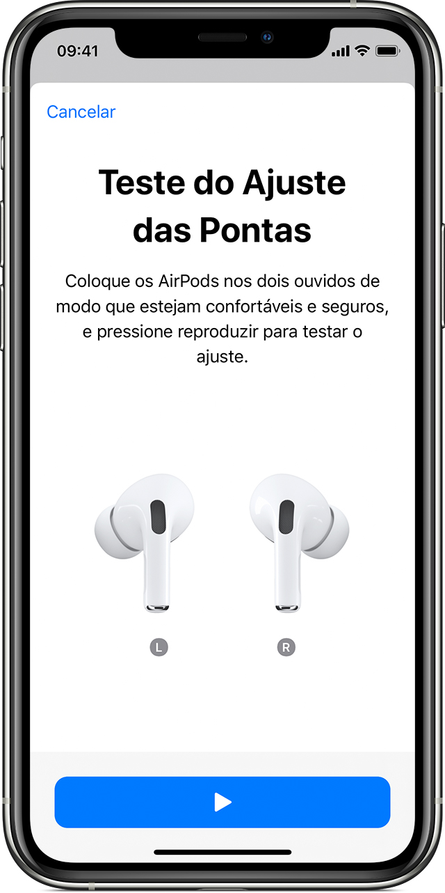 Escolher as pontas de fone dos AirPods Pro e usar o Teste do Ajuste das Pontas