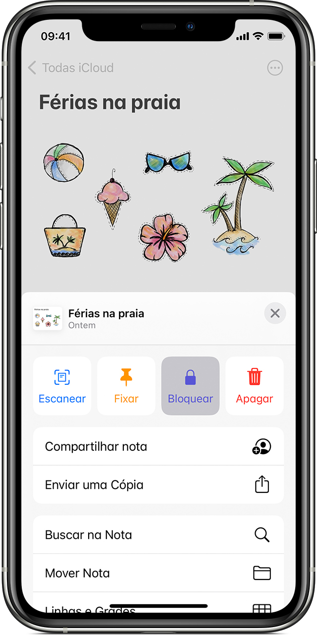 Se você iniciar uma sessão no iCloud com um ID Apple gerenciado, não poderá bloquear as notas.