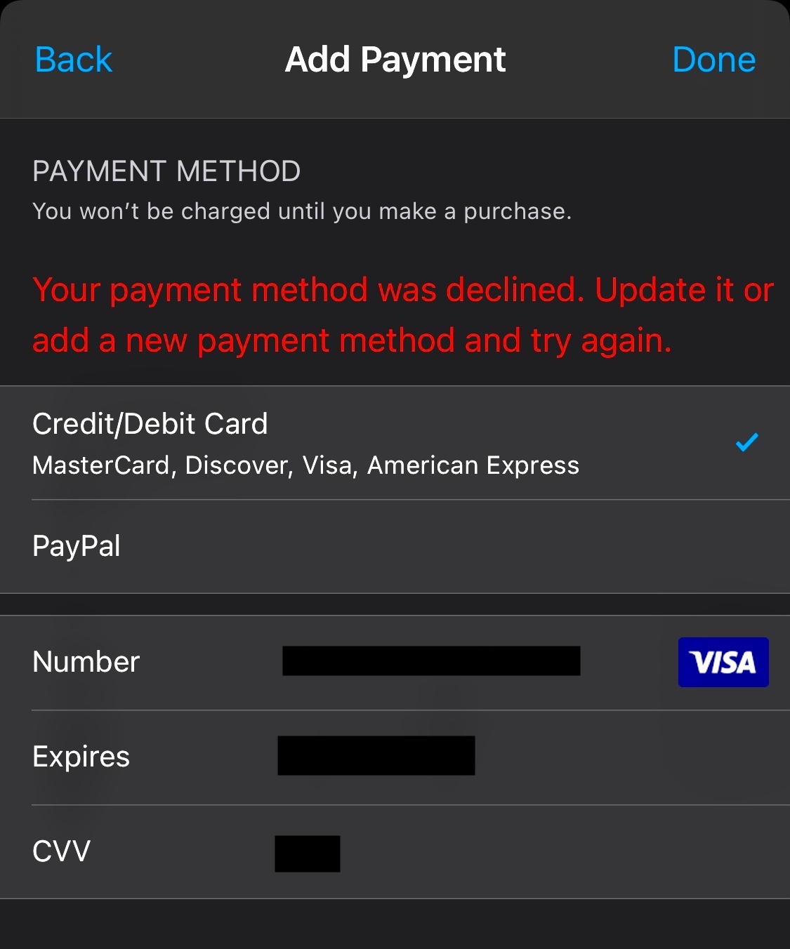 Caso você não consiga fazer compras nem atualizar apps, incluindo apps gratuitos, a forma de pagamento utilizada pode estar com problemas. Para corrigir essa situação, adicione outra forma de pagamento ou atualize as informações de pagamento.