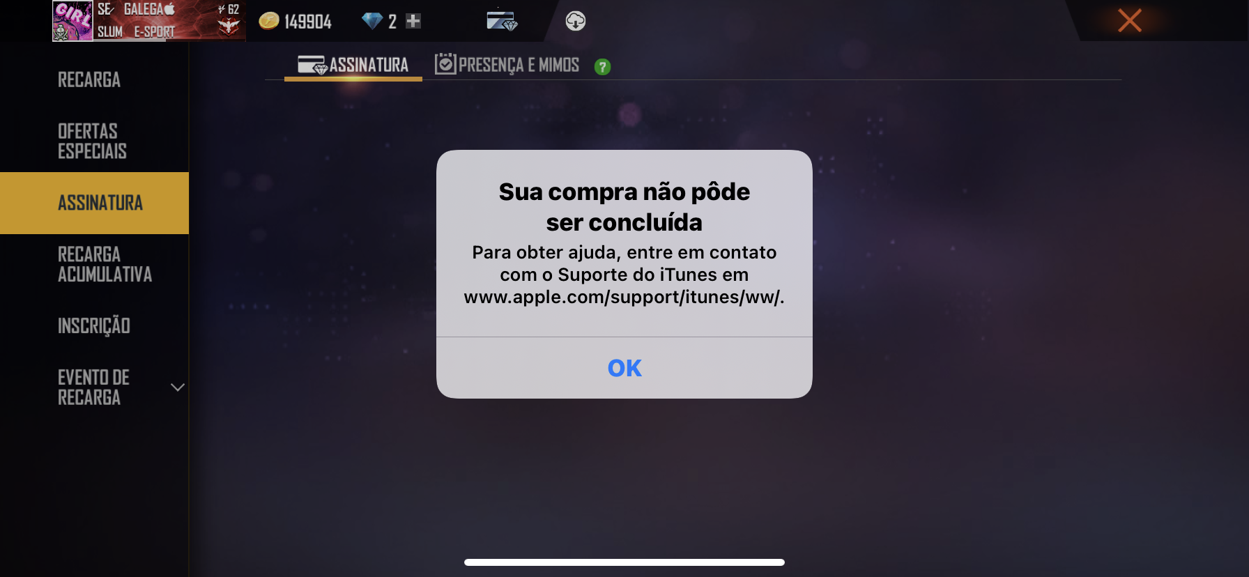 Não consigo fazer compra no jogo da App Store