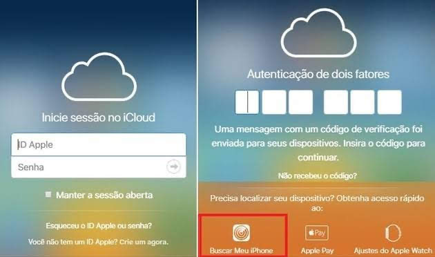 QUANDO PEDIR O CODIGO DE VERIFICAÇÃO, EM BAIXO TEM OPCAO CHAMADA "ACESSO RAPIDO"QUE LA VOCE CLICA - BUSCAR IPHONE