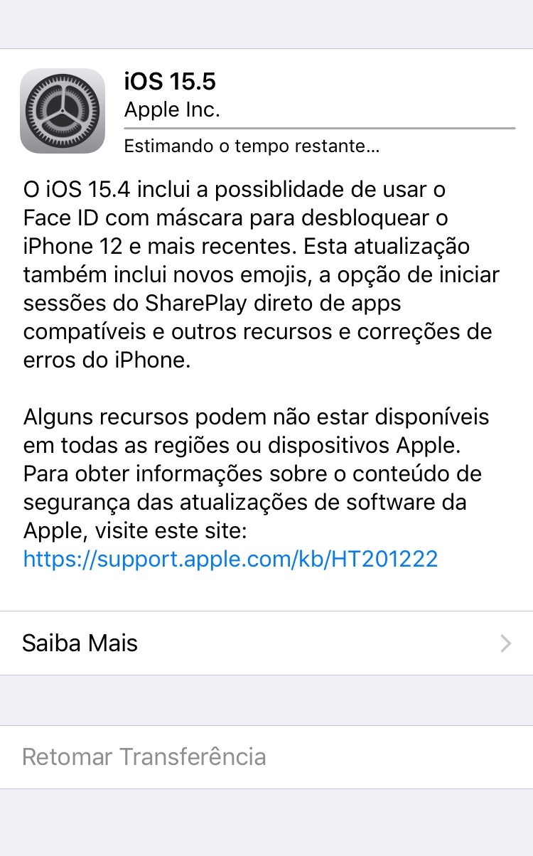 Tenho um iPhone 7 e a atualização não finaliza, não dá o tempo estimado, a rodinha não para de girar.... Já desliguei o celular... e nada fez o iOS atualizar, fica dando tempo estimado, sem descrever o tempo.... Faz uns 2 dias que está assim 😭