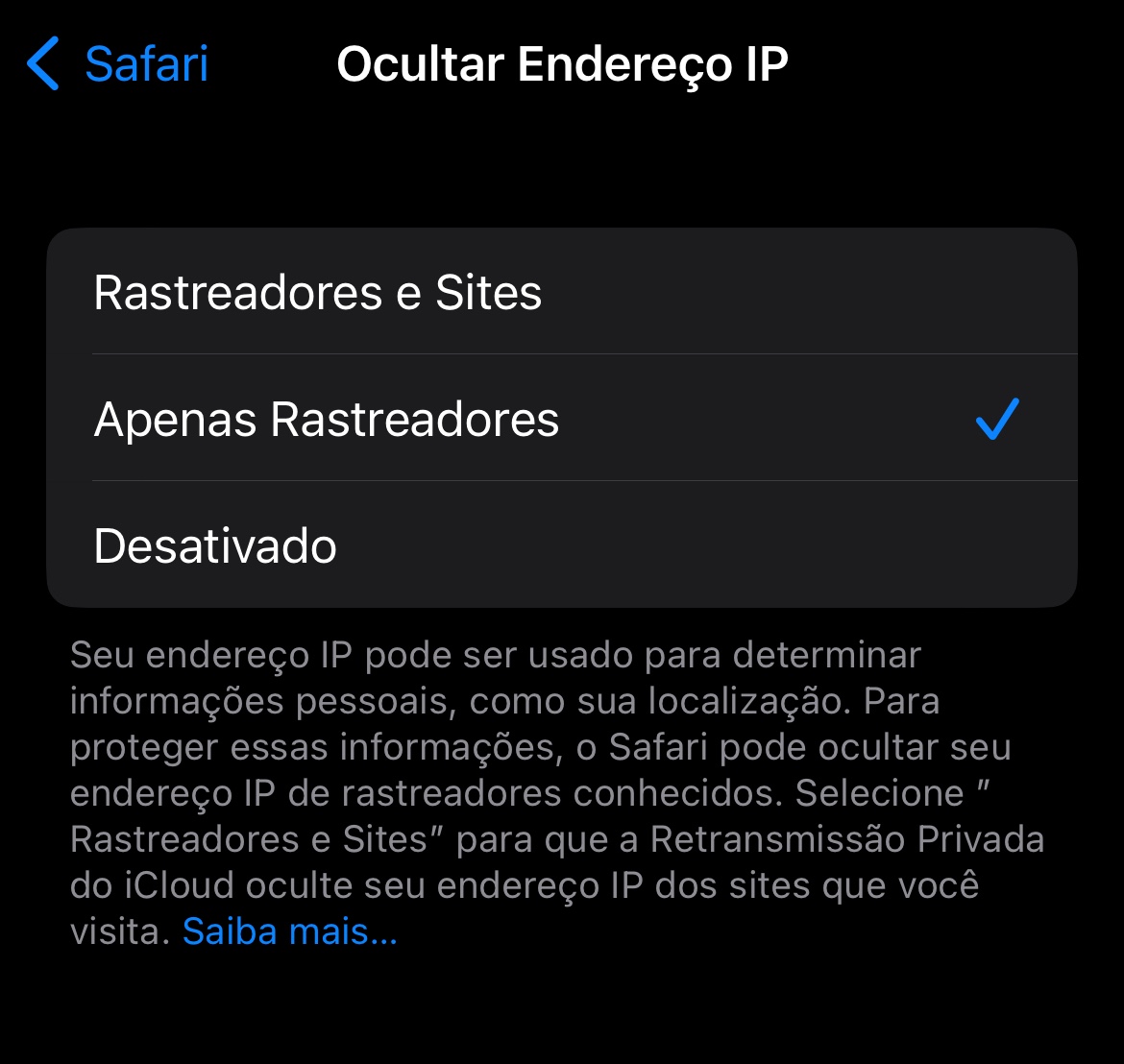 Por padrão, o safari já fornece uma leve camada de proteção na internet, porém vai do usuário decidir se utiliza estas opções ou não.
