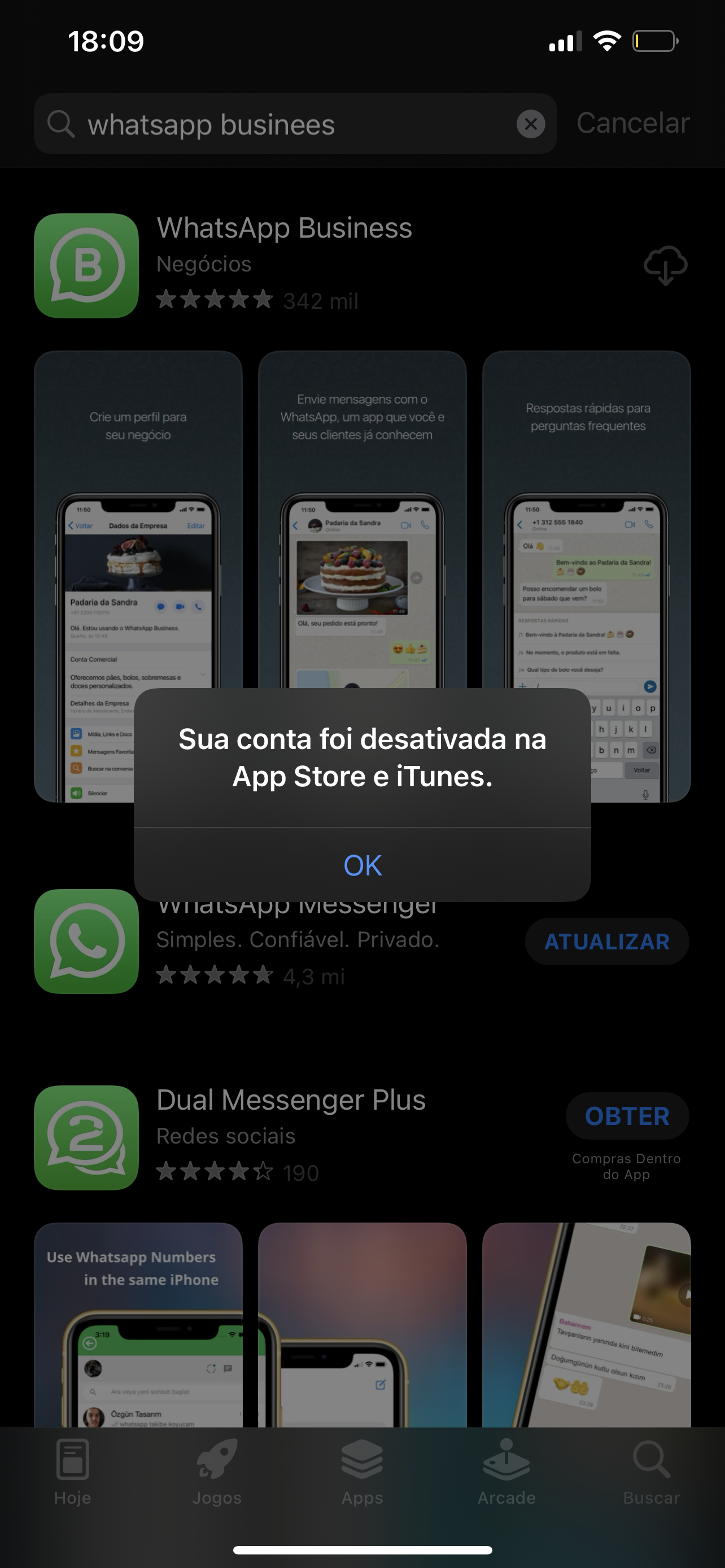 Estou recebendo que minha conta foi desativada e não consigo baixa os app