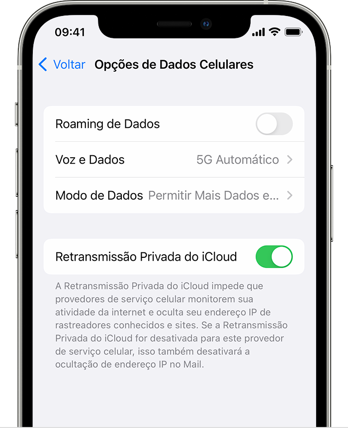 Essas opções estão disponíveis em Ajustes > Celular > Opções de Dados Celulares. Se você estiver usando um Dual SIM, acesse Ajustes > Celular e escolha um dos números. Em seguida, altere as opções.