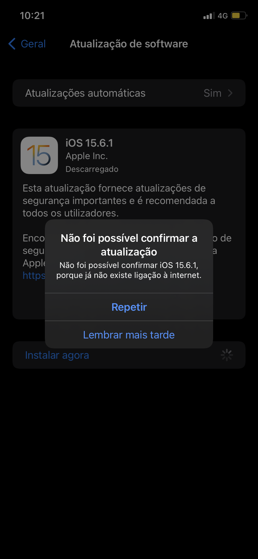 Não consigo fazer a atualização 15.6.1 no iPhone
