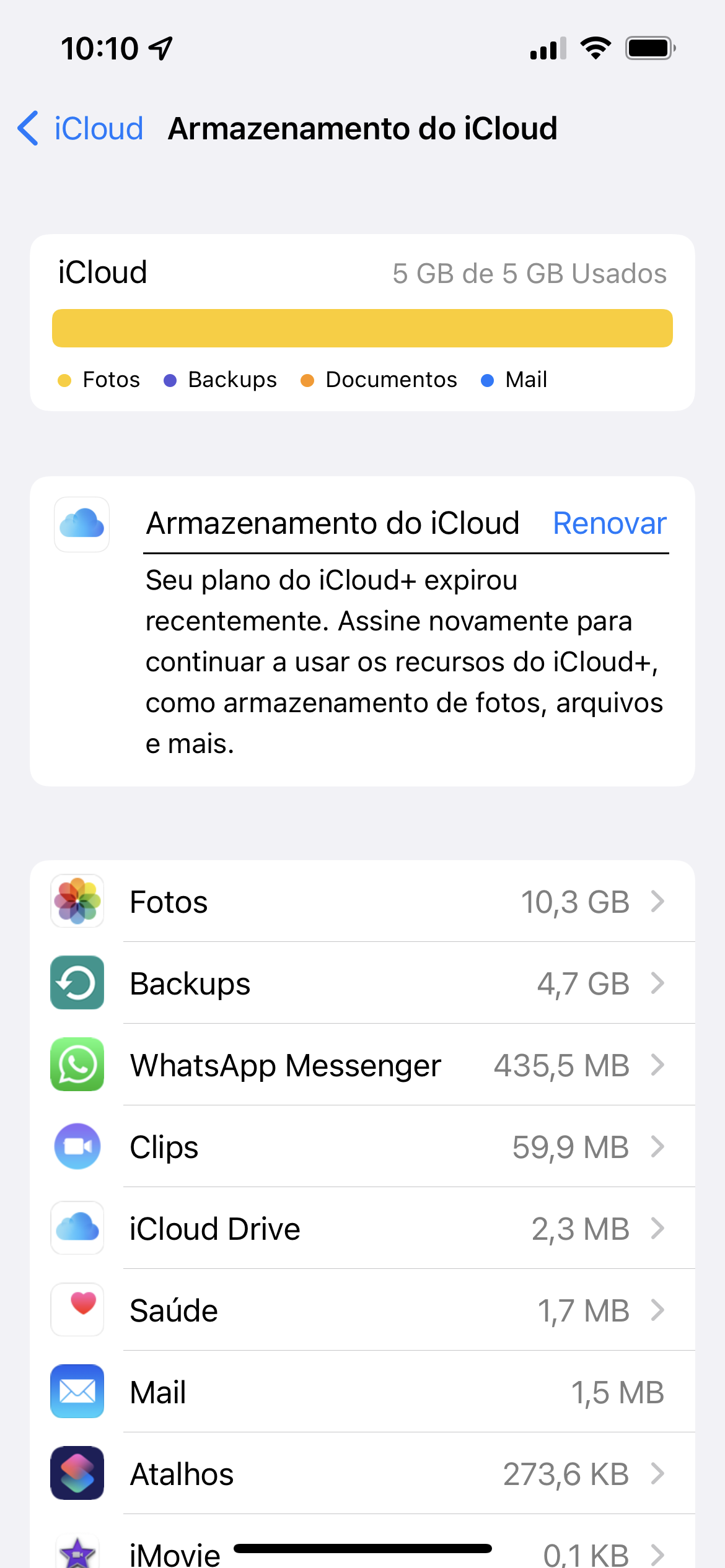 Verificar o armazenamento do iCloud no iPhone ou iPad