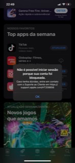 Estou tentando entrar no App Store e está dizendo que minha conta foi bloqueada, Quero saber o motivo?
