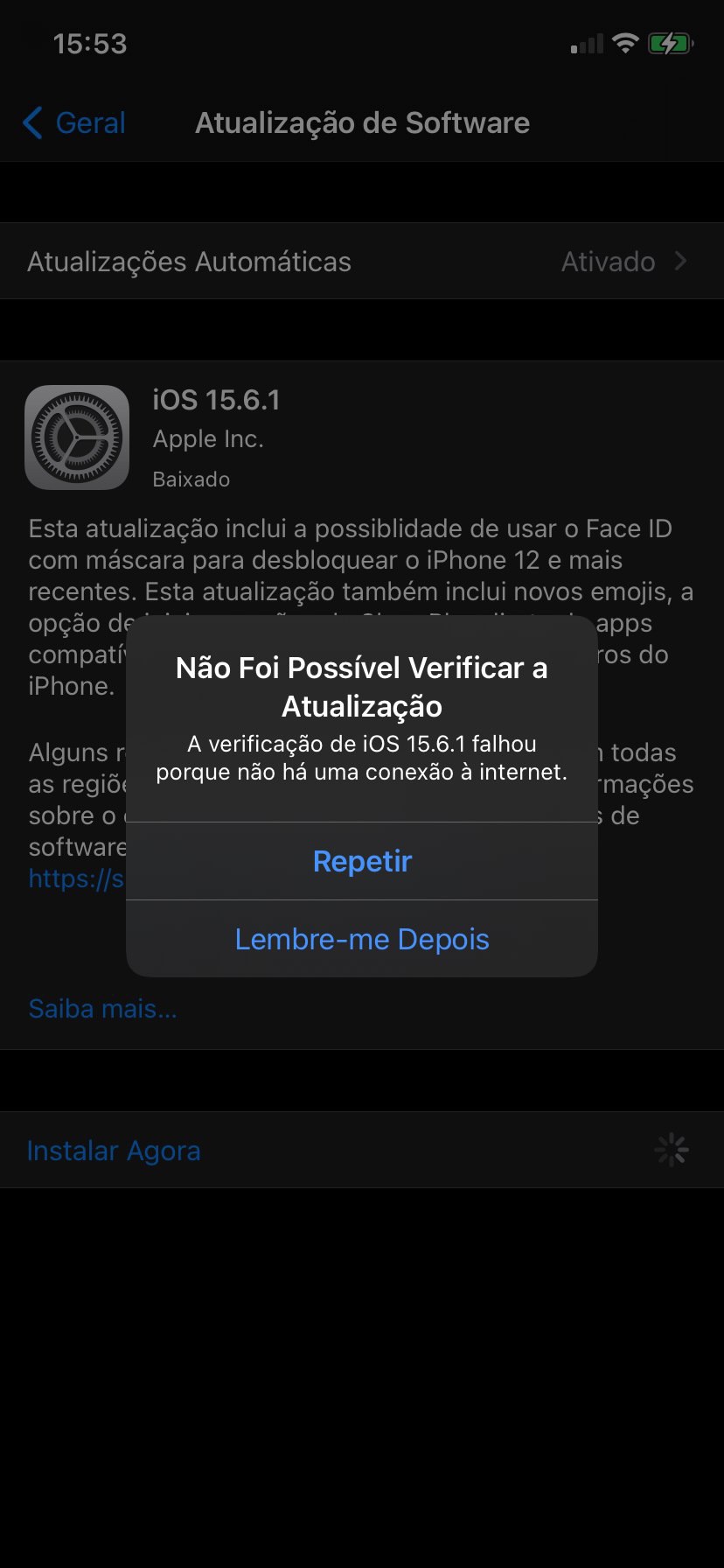 "Não Foi Possível Instalar a Atualização. A atualização de software requer a conexão a uma rede."