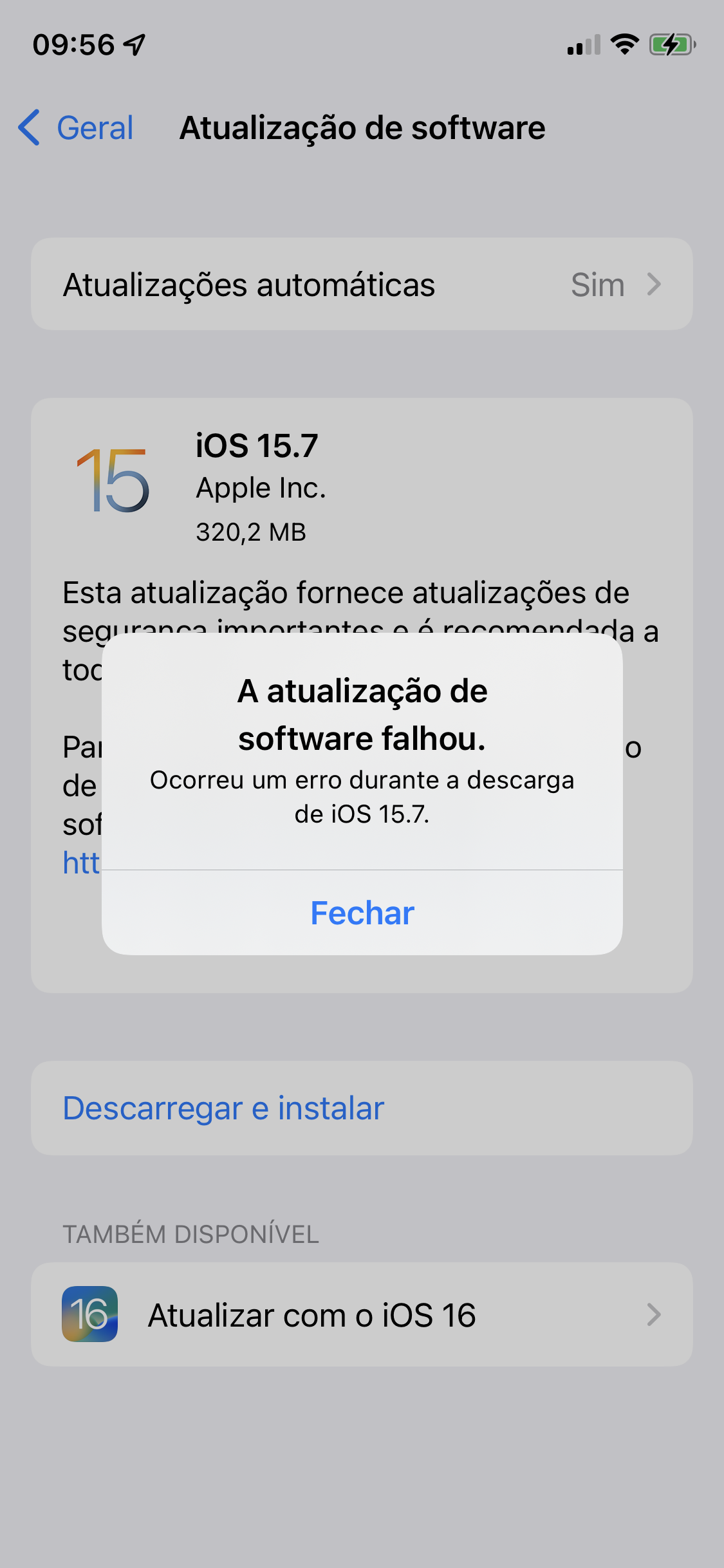 a atualização de software falhou. Ocorreu um erro durante a descarga de iOS 15.7